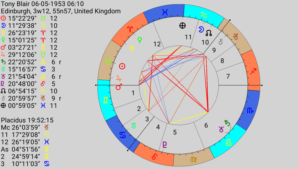 1. This is sobering for me to read with 7 planets in air all square to Neptune but it all makes a lot of sense.. the balance between the mind and emotional drivers is complex, it would be interesting to see what of Blair’s childhood drove this. in the end though we get the leaders we elect so that must have something to do with how disconnected the collective can be. Do you live in the UK?