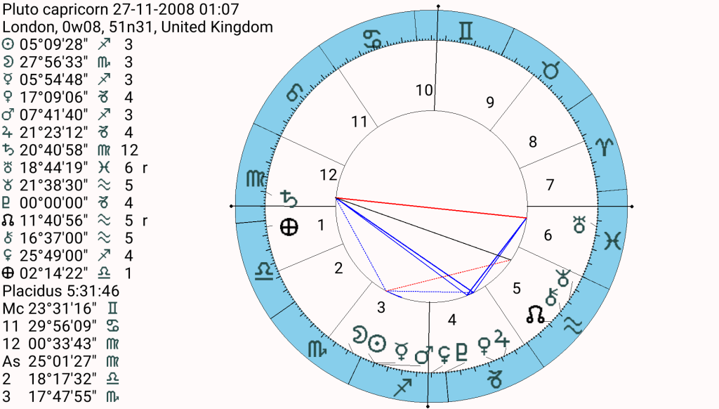 You may not remember that far back, but 2008 was a very difficult year. The banks blew up the economy; billions of dollars, euros and pounds were pumped into them so they didn’t completely tank. Everyone got poorer except for the very wealthy who got much, much richer. In the ingress chart, Pluto is in the 4th house. In one area in particular, not just in the UK but worldwide, houses became assets and the price of renting and lately mortgages skyrocketed. Sound like Capricorn? Hmm, maybe, or maybe the boom and bust was the last gasp of Pluto in Sagittarius, a bit more likely I feel.