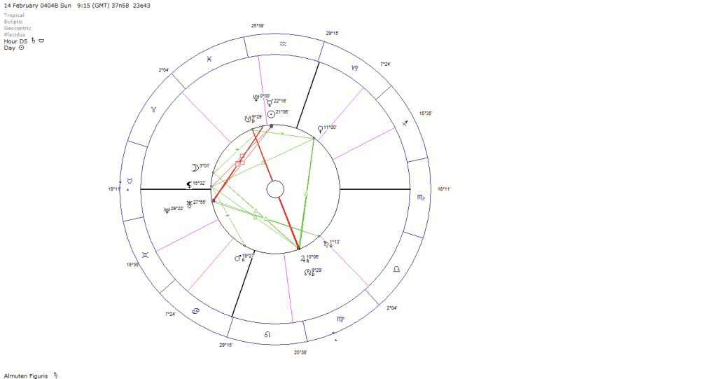 One final point. The US military identifies itself with Classical Athens and their army. The Greek army was extremely successful and even defeated the great Persian army (no change here). But Athens overreached itself and committed the crime of hubris (believing you were invincible or god-like). Unfortunately, after hubris comes nemesis (complete destruction). Athens was eventually defeated by her old foe Sparta and became a vassal state. I looked up the date. The actual date of capitulation was 24th of April 404 BCE. I wondered what Pluto was doing around that time, a lo and behold Pluto moved sign, from Aquarius to Pisces. This suggests the fall of empires, be it political or military or commercial is one showing of Pluto on the edge.