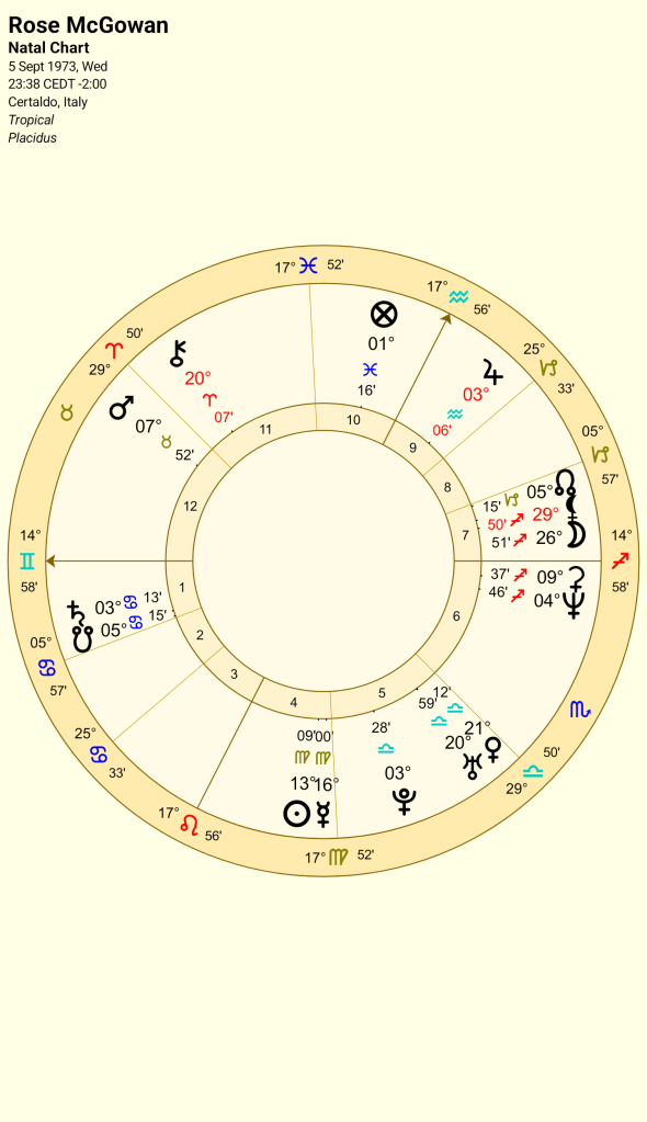 Rose McGowan has Moon conjunct Lilith. I first knew of her as she starred in Charmed a TV show my daughter loved about three witches who battled demons on a daily basis. Which fits Lilith as the witchy woman. Rose had an unusual childhood, she grew up in a cult, her father ran the Italian chapter of the Children of God, she spent her childhood in their communes around the world. At 15, she legally emancipated herself from her parents and moved to Los Angeles. Latterly, Rose was known for calling out Weinstein for sexual abuse in 1997, she was paid £100,000 by him, presumably in an attempt to silence her. She later accused male actors, including Ben Affleck for failing to expose the Sexual Abuse of women in the industry. Rose became part of the ‘Me too’ movement which ended in Weinstein’s imprisonment for multiple offences. Angry, mouthy, rebellious and fiercely independent, Lilith Moon in Sagittarius ticks all these boxes.