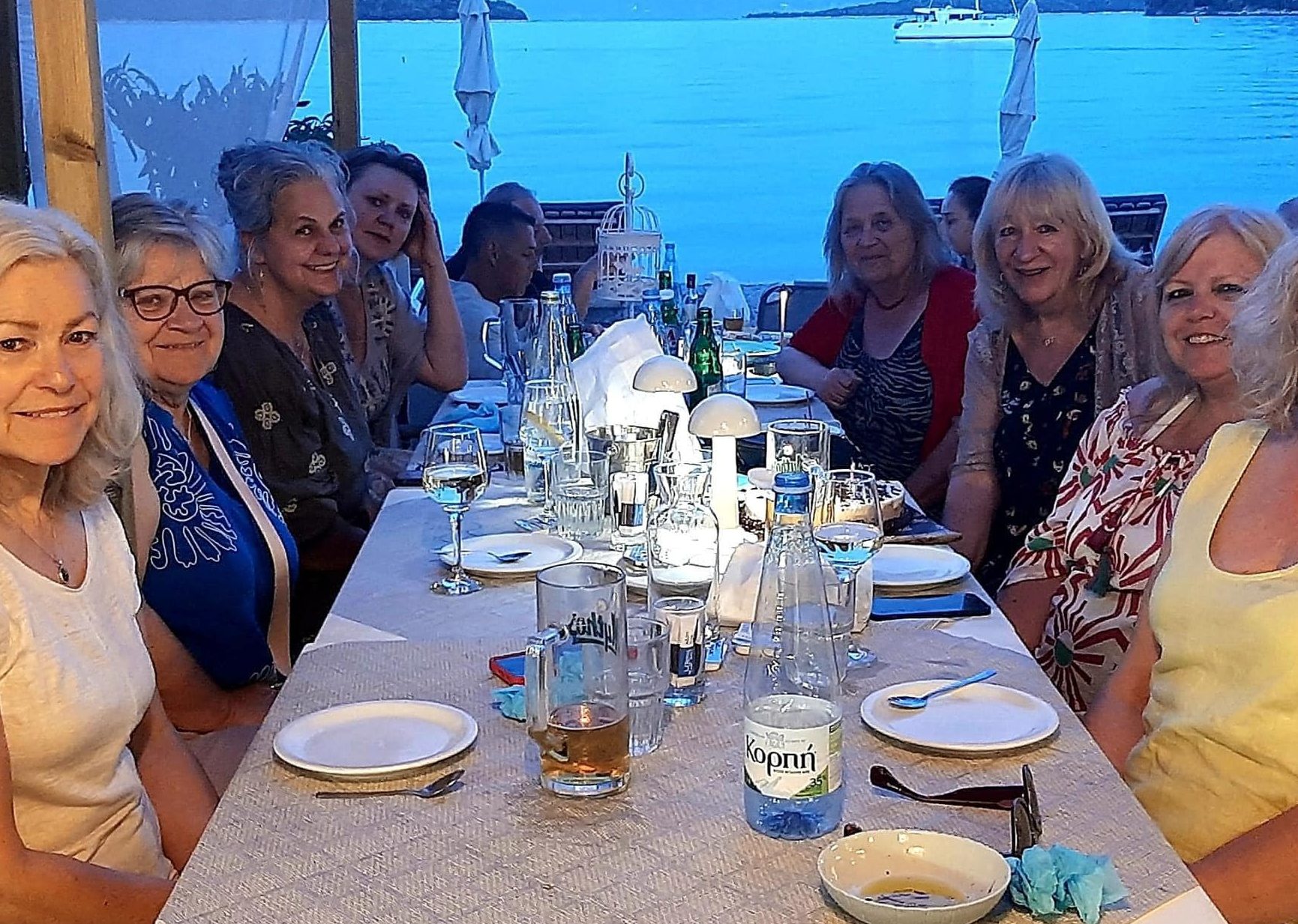 There are lots of flights to choose from, average journey time 3 hours, you’re met at the airport and transfer time to Nidri is 45 minutes by pre-booked private taxi share. It couldn’t be easier. Also please don’t hesitate to come alone. Over 90% of students are singles, you’re looked after from the moment you get off the plane, optional and cheap group meals are arranged for the evenings so you never have to be alone unless you wish to be. And age range of students over the years has been 18 to 86!
